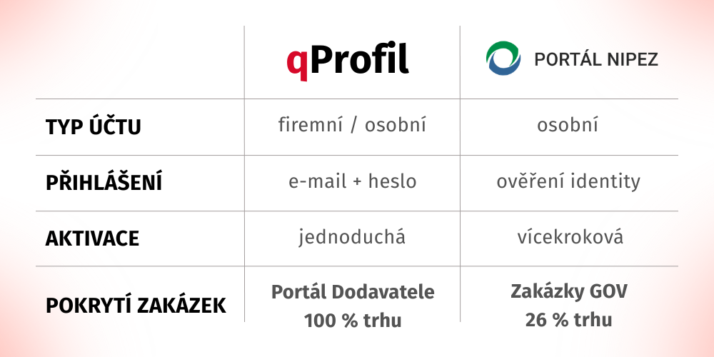 Podle toho se budete přihlašovat přes qProfil (E-ZAK, PVU, Portál Dodavatele) nebo NIPEZ (NEN, Tender arena, Tendermarket)